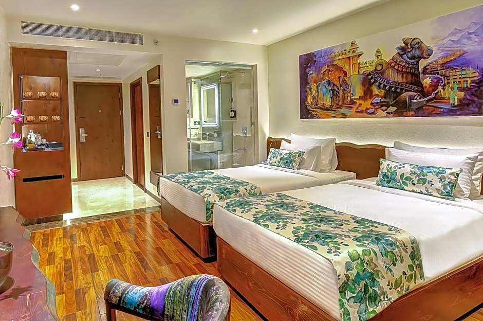 The spacious air-conditioned twin room offers a flat-screen TV with streaming services, soundproof walls, a mini-bar, a tea and coffee maker as well as city views. The unit has 2 beds.